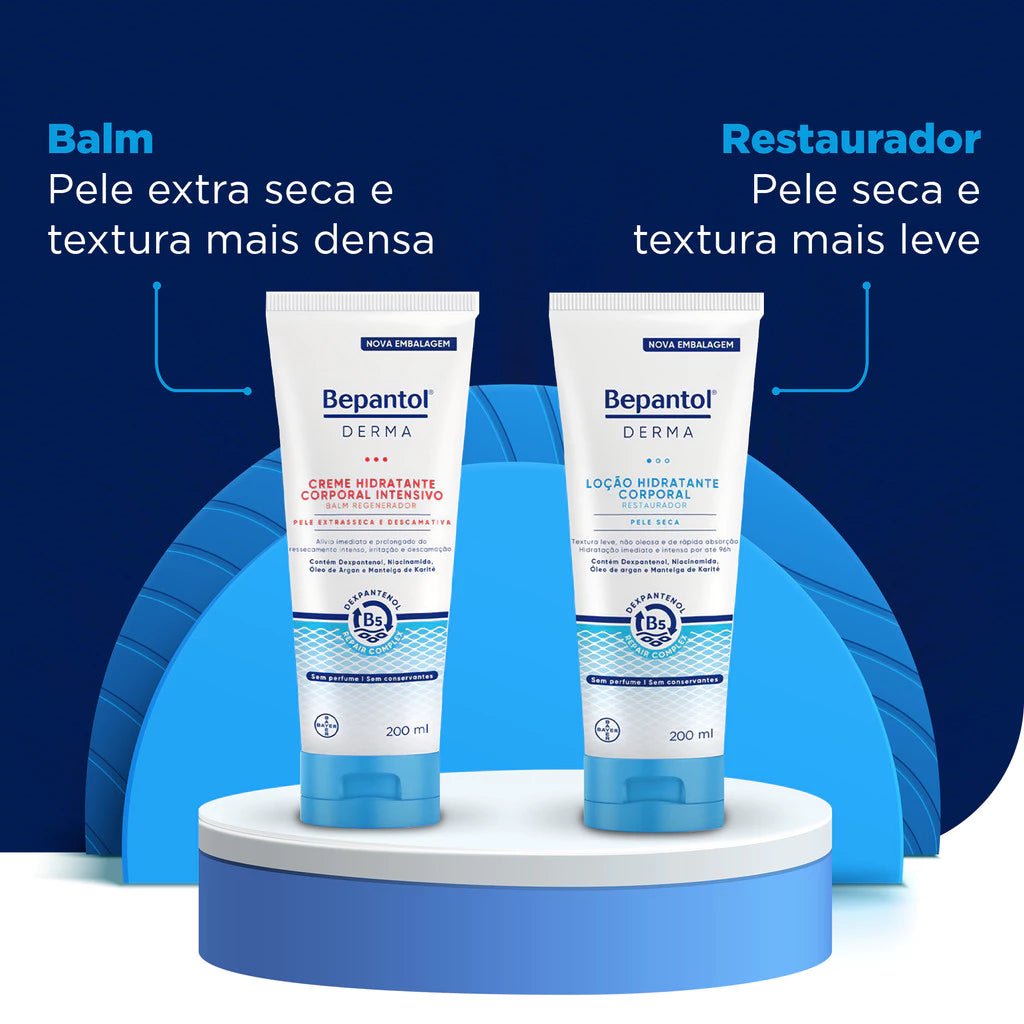 O Creme Hidratante Derma Intensivo da Bepantol oferece alívio imediato e prolongado do ressecamento com balm regenerador.